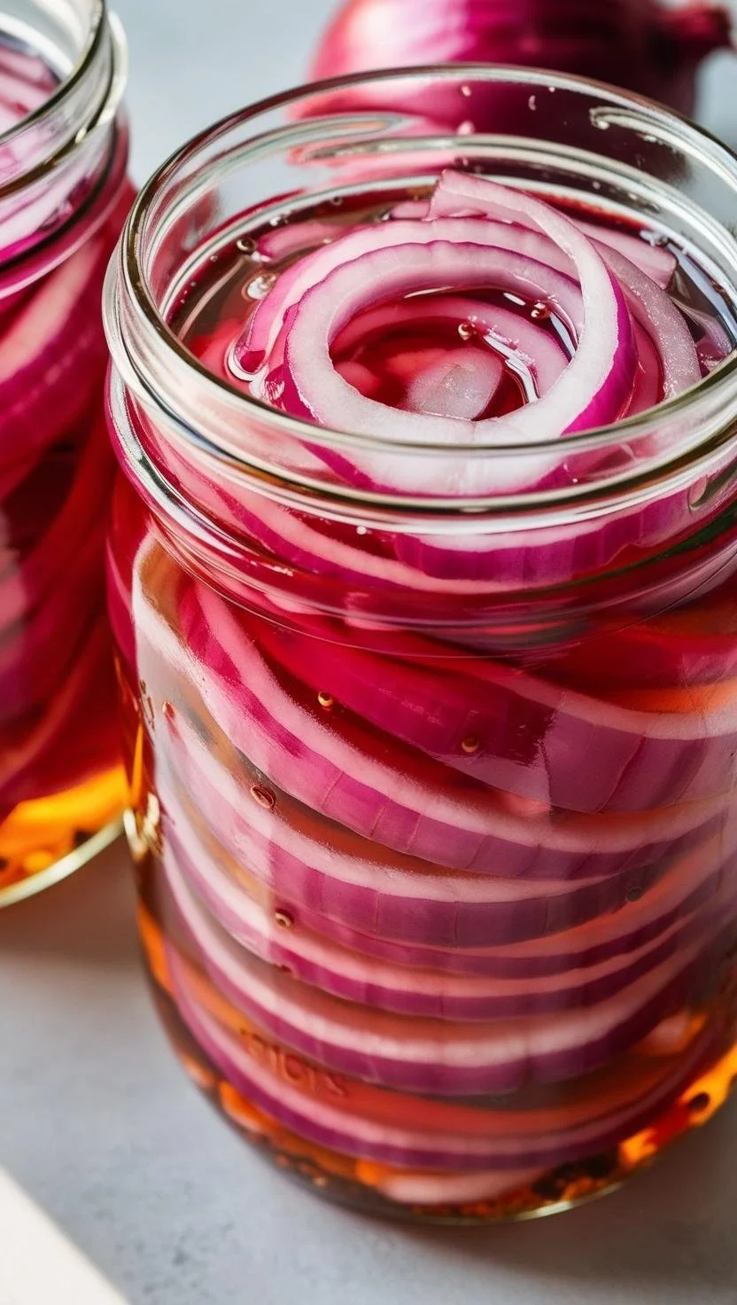 Thinly slice the onions (it's helpful to use a mandoline), and divide the onions between 2 (16-ounce) jars or 3